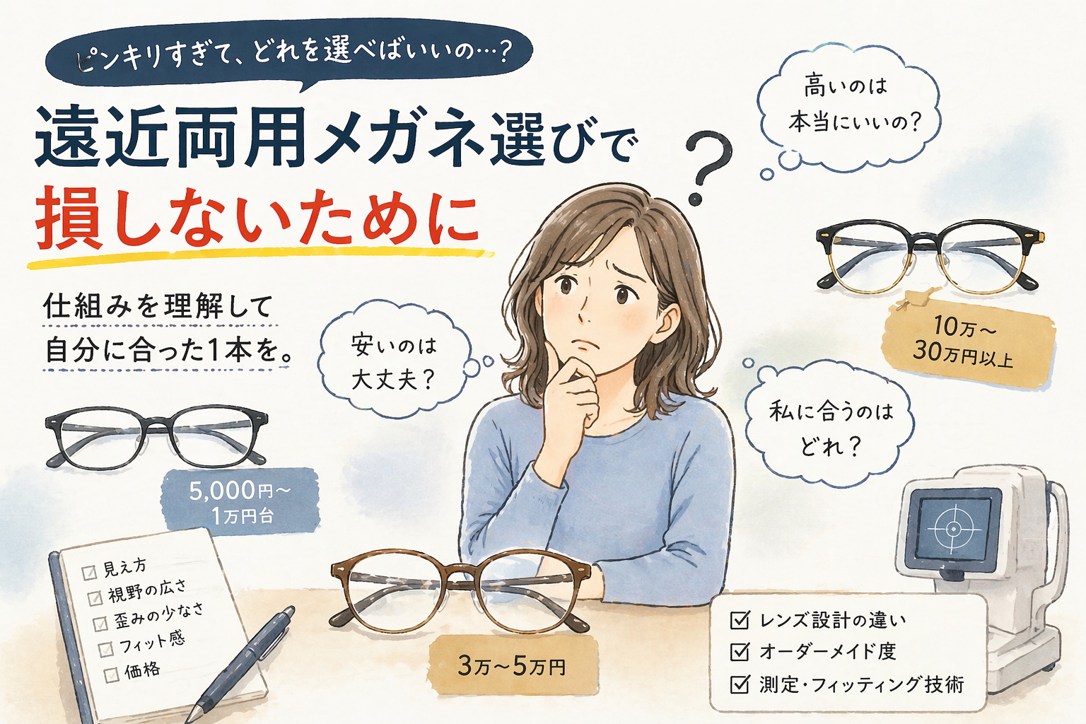 遠近両用の快適さは、レンズの相性と眼鏡店の技術で決まる